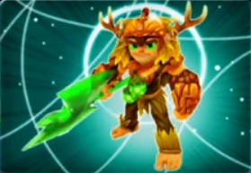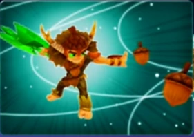 Es un elfo, su piel es de color beish, sus ojos son verdes, anda descalzo, y usa una armadura hecha con cascaras de nueces y hojas, las cascaras que protegen sus manos tienen grabados el símbolo del Trap Team, usa un casco con una cascara de bellota con dos cuernos y lleva una correa con bellotas como granadas. Su arma es un hacha hecha de Traptanium verde.