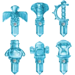 The default color schemes for Air Imaginators are called Arctic Breeze, Polar Chill, Storm Cloud, Aqua Marine, Glacial Frost, Jolly Green and Fresh Powder. Parts unlocked by Air Creation Crystals are from the Birdman set, including a full body, tail and a bit of armor.