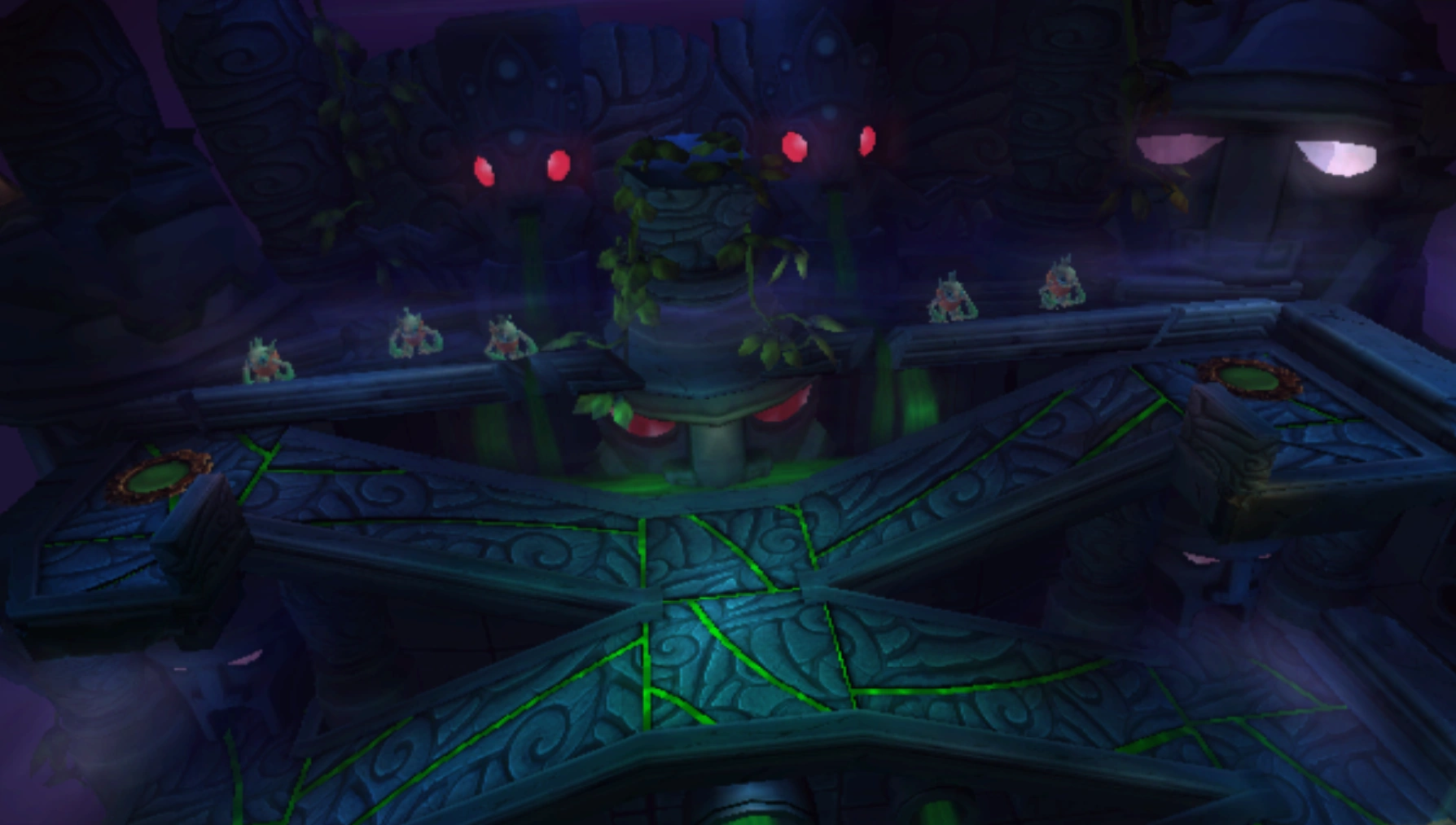 The Aqueduct is, as its name would suggest, a dark stone aqueduct filled with flowing green liquid. Carved bridges, red-eyed statue heads, and decorative vines all lend the arena an ominous atmosphere.