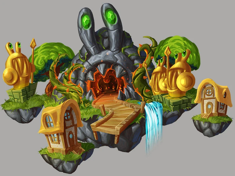 Concept art by Soosa Kim of the Chompy Cave within Chompy Mountain