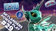 Echo lived in an undersea kingdom that was built around an enormous oyster shell, and at its center was the Pearl of Wisdom. Every day water dragons from all around the kingdom would come to ask questions of the Pearl. Because this was a sacred ritual, anyone living near the Pearl were required to speak only in whispers. This was challenging for Echo, who lived directly next to it. She had a gift – and it was loud – and often got her in trouble. One day, a gang of sea horses known as the Aqua Jocks rode into town and claimed the Pearl for themselves. They cast an unbreakable bubble around it and began dragging it away with enormous chains. The nearby water dragons, who had been quiet for so long, were unable to even call for help. Then Echo appeared – and with her loudest sonar blast, she shattered the bubble and blew the sea horses out of the kingdom! Her heroic actions caught the attention of Gill Grunt, who recruited her as a Skylander. Now Echo sounds off against evil all throughout Skylands!