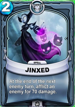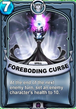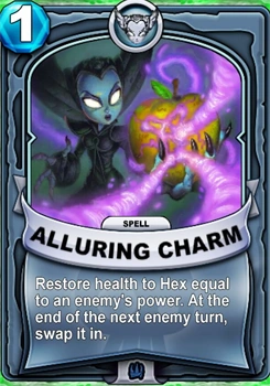 In Skylanders: Battlecast, Hex has the ability to curse and weaken enemies with charms, spells or skulls summoned from a cauldron; much of her gameplay is tied around attacks that strike long after they have been cast. Her Gear is the Cursed Choker, an accessory meant to be put on enemies to gradually lower their health and power, and her Special Ability is Witch's Curse, reducing an enemy's max health. One of her stronger spells is also Foreboding Curse, in which Undead energy is channeled through a summoned skull to reduce an enemy's health to the smallest possible no matter how much they have. Hex's unreleased card, appearing in one of the updates, is the signature Relic Forbidden Phial, which multiplies max-health-reducing effects to other enemies.
