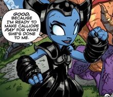 An unknown time after the encounter with Calliope, Hex was attacked by Drow and discovered that her magic was reduced to the simplest of spells, losing even her levitation powers. Returning to the Skylanders Academy in bad shape, she found out that Spyro was in a similar situation. After talking to Persephone and finding out that their magic was stolen, they reached the conclusion that Calliope is behind the disappearance of their powers. Despite her protests to solve the issue alone, they set out to the Cadaverous Crypt with the help of Wallop, Flynn and Mags, and the sorceress expressed being reminded of old fears when questioned by Spyro about her attitude.