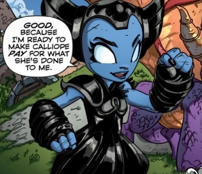 Hex was putting on a charity magic show in Woodburrow, entertaining a crowd. When she asked for a volunteer for her next magic act, the elf sorceress picked the fairy, Calliope, as her assistant. Unknown to Hex, Calliope stole the sorceress' powers, who felt dizzy from the effects but managed to continue her act without trouble.
