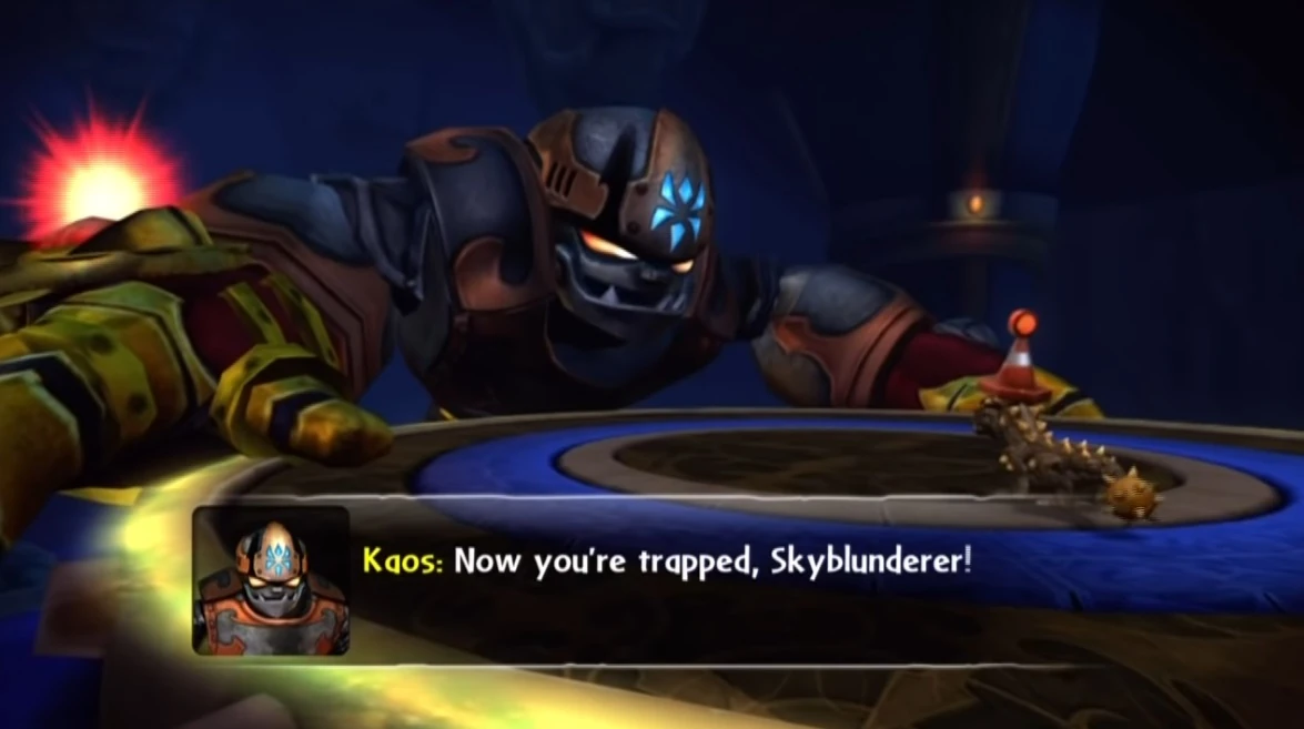 - While Kaos was never the main antagonist in any of the Nintendo 3DS games prior to Skylanders: SuperChargers Racing, he is mentioned in the 3DS version of Skylanders: Swap Force.