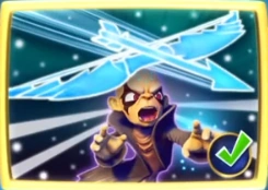 His mind weapon combos follow a slightly randomized pattern. His primary attack combos start with a swing of a Knight or Smasher weapon, followed by two Swashbuckler or Sentinel weapons, and ending with a Brawler attack. His secondary combos start with a Bazooker or Bowslinger shot, followed by a stream of lightning from a Sorcerer staff, and ending with a flurry of Ninja or Quickshot projectiles.