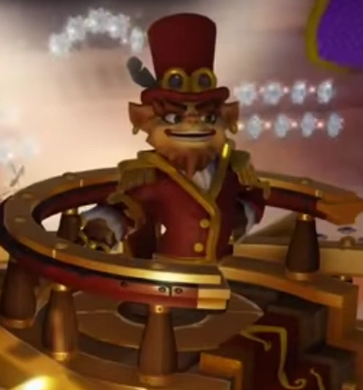 Pandergast, also known as Pandergast the Magnificent, is an infamous race promoter who appeared in Skylanders: SuperChargers. He is the host of the Skylands Speedway, the Ridepocalypse Demo Derby, and other racing events.