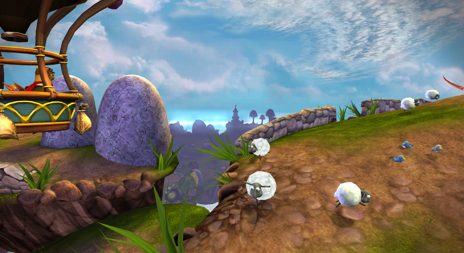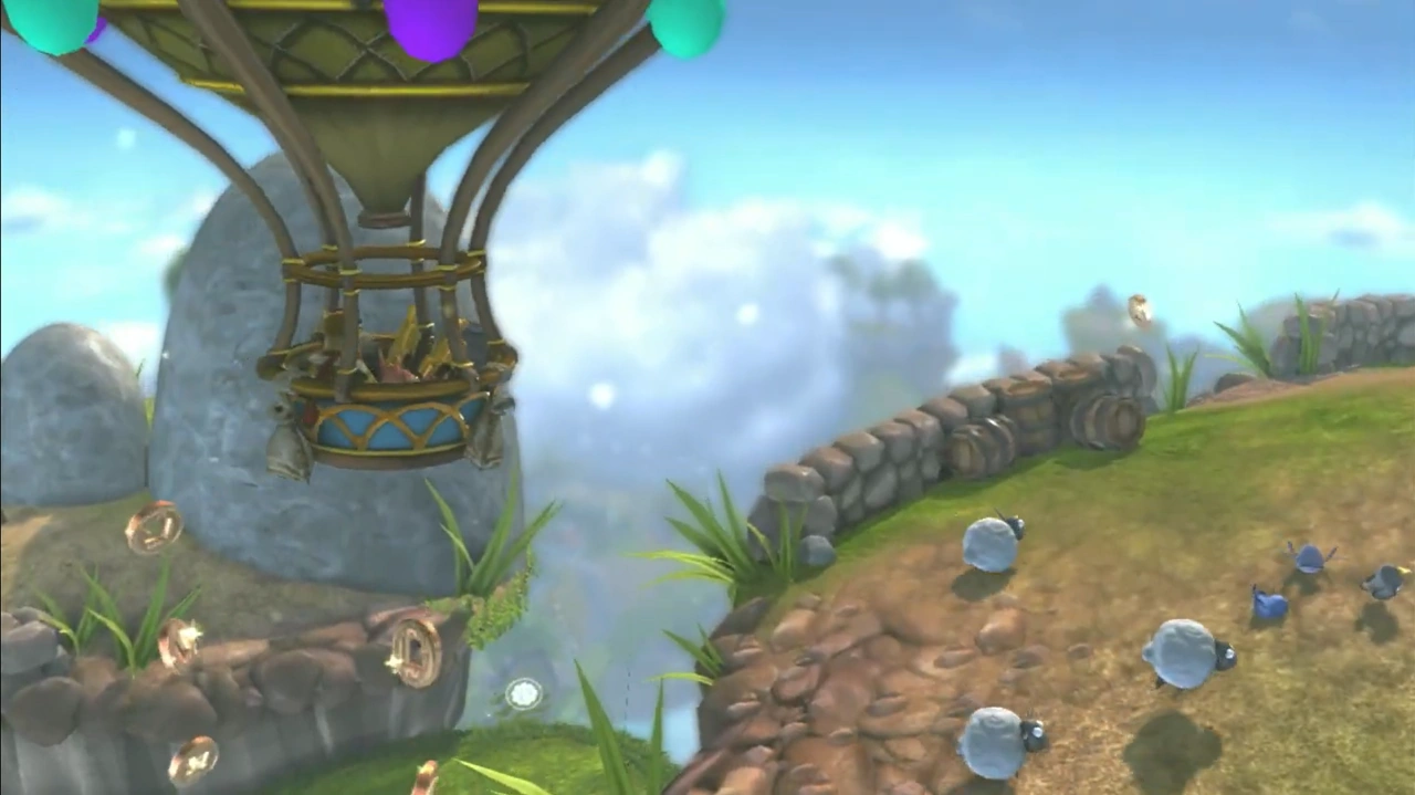 Arriving by balloon, the Skylanders are dropped off on one of the islands by Flynn, who chooses to scout from overhead while the Skylanders search for Cali on the ground. After battling through Chompies and Drow Spearmen, the Skylanders arrive at the Landing Deck, where Flynn informs them that Cali had been captured by the Drow. The Skylanders defeat the remaining Drow and enter a turret to destroy the locks on the gate trapping Cali, freeing her. Afterwards, Flynn swoops in to pick Cali and the Skylanders up, boasting while oblivious to the sheep hanging onto his balloon.