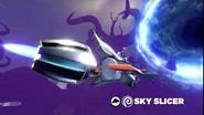 The Sky Slicer is Stormblade's signature vehicle in Skylanders: SuperChargers. It is aerodynamic and lightning fast! Originally designed by Stormblade to explore the furthest reaches of Skylands, the Sky Slicer has since been retrofitted with high-powered weaponry and armor, making it one of the best in the nest!