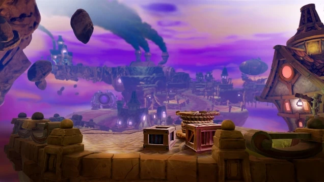 - Inside the factory, the music from Oilspill Island from Skylanders: Spyro's Adventure along with that from Drill-X's Big Rig from Skylanders: Giants can be heard.