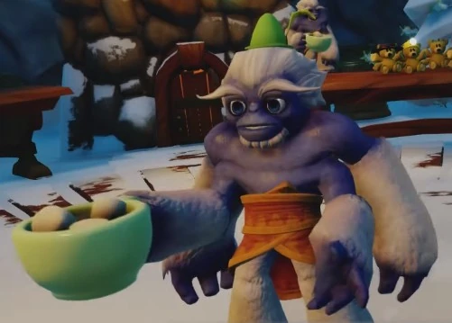 Yetis, or simply Yeti, are a race of white-furred, blue apes that reside in the cold areas of Skylands. One notable Yeti is Slam Bam, who is one of the Skylanders. There are two-armed Yeti, four-armed Yeti, and if you believe the rumors, 638-armed Yeti; thank heavens they don't mind the cold, the gloves bill would be huge.[1]